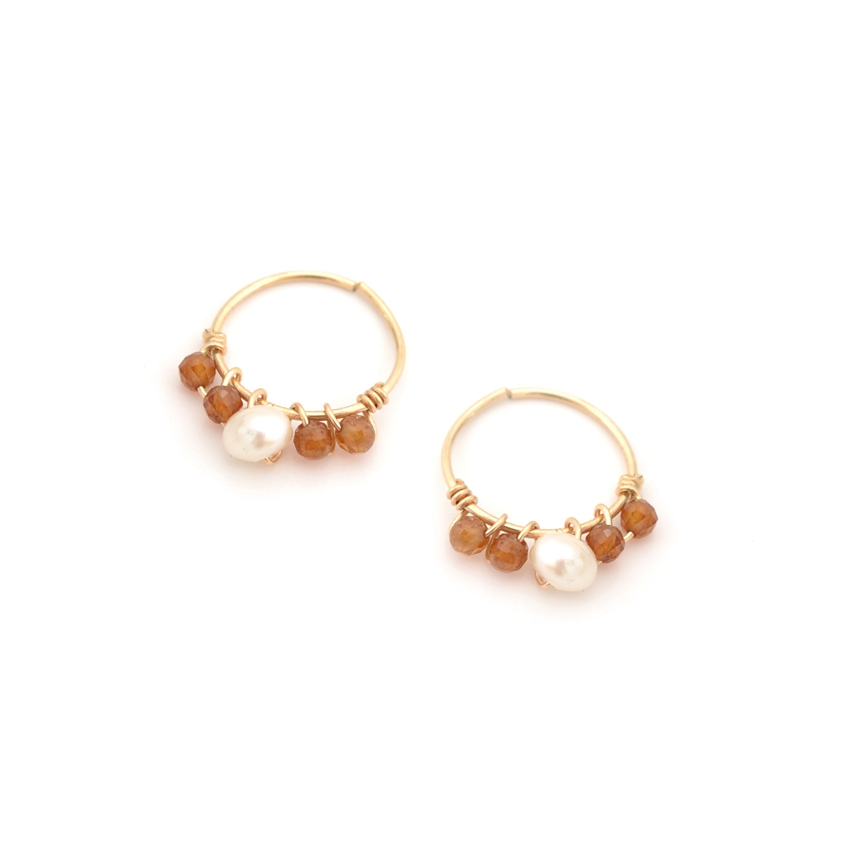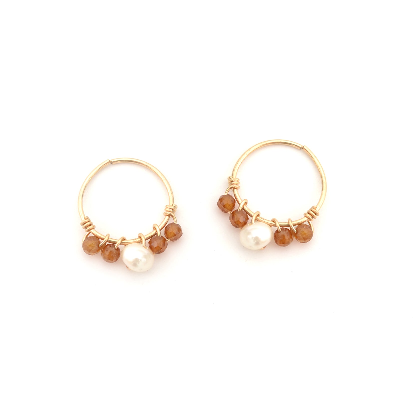 Ravissante mini créole ornée de pierres naturelles et d'une perle d'eau douce lui conférant un style bohème.