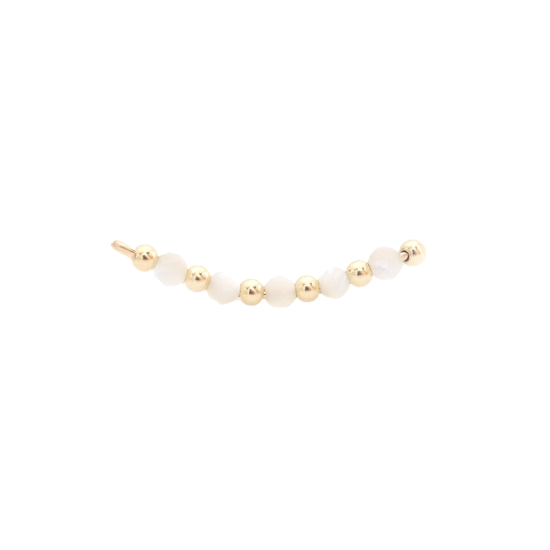 Ravissante boucle d’oreille ornée d'une multitude de pierres fines naturelles (nacres blanches). Ce climber sublimera votre visage avec élégance et finesse. Il se porte idéalement sur le lobe et remonte en soulignant la courbe de l'oreille. Il peut se glisser à différents emplacements du lobe selon vos piercings et vos envies !