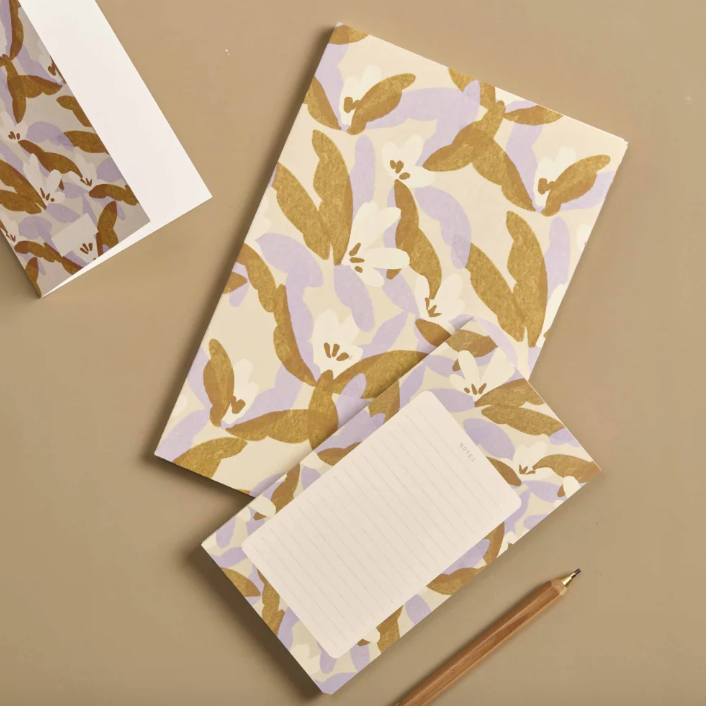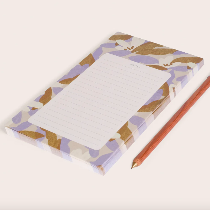 Quelques fleurs Lilas et ocres déploient leurs pétales légers sur la couverture de notre bloc-notes Danse. Ne laissez plus s'envoler vos idées ! Ce bloc-notes accueillera toutes vos pensées et vos notes.