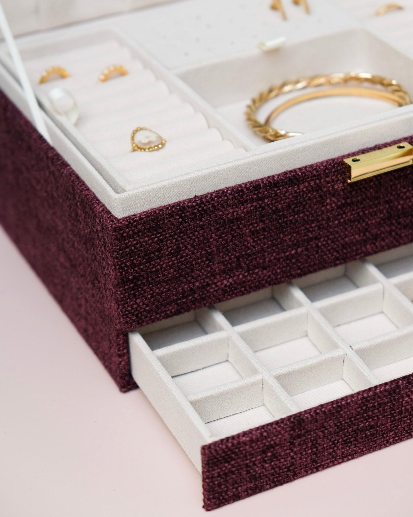 Boîte à bijoux - Denise (lin bordeaux)