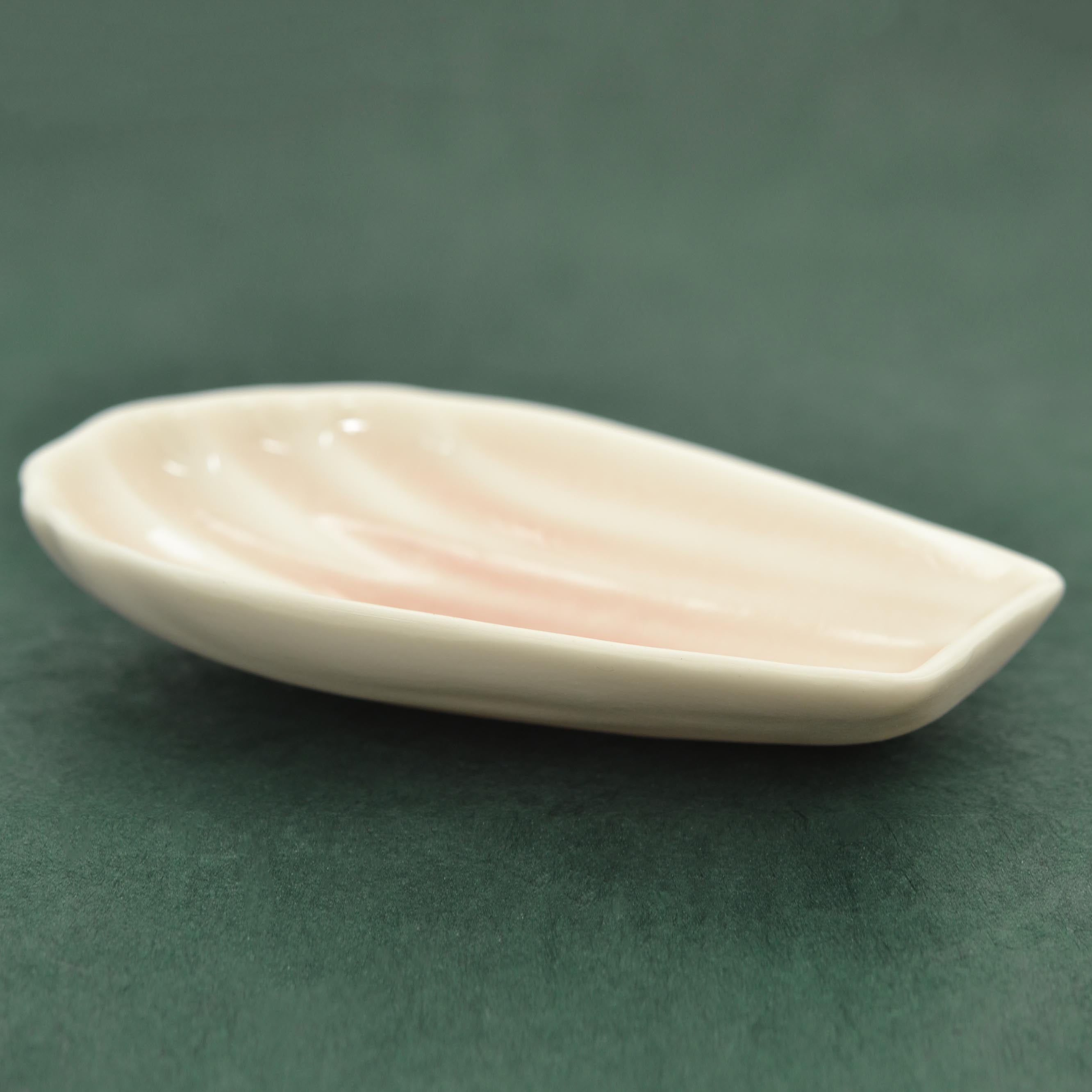 Petit vide-poche en porcelaine façonné à la main par la créatrice dans son atelier provençal. Inspiré de la forme iconique d'une madeleine, il accueille tous vos jolis trésors avec douceur et poésie. Chaque pièce est unique et émaillée d'un rose pâle délicat.